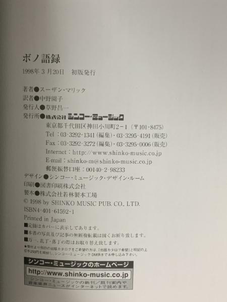 ボノ語録 シンコーミュージック スーザン ブラック 訳 中野園子