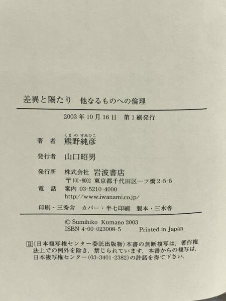 差異と隔たり―他なるものへの倫理― 岩波書店 熊野 純彦