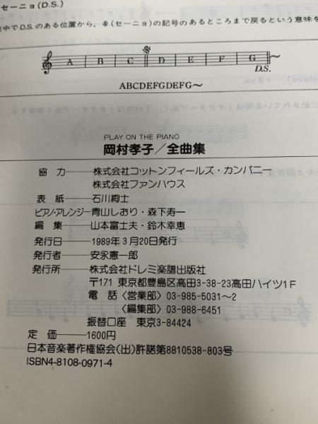 PLAY ON THE PIANO 岡村孝子全曲集 ドレミ楽譜出版社 山本富士夫、鈴木幸恵