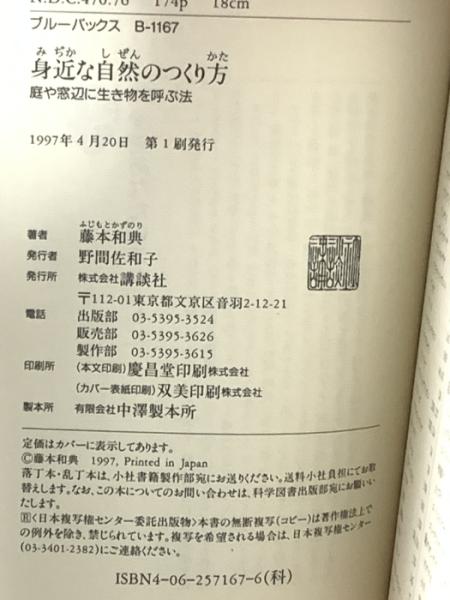 身近な自然のつくり方: 庭や窓辺に生き物を呼ぶ法 (ブルーバックス 1167) 講談社 藤本 和典