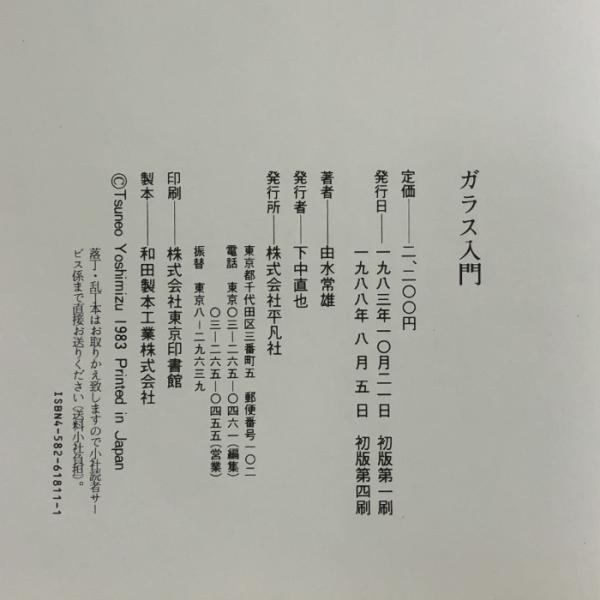 ガラス入門 (WELシリ-ズ) 平凡社 由水 常雄