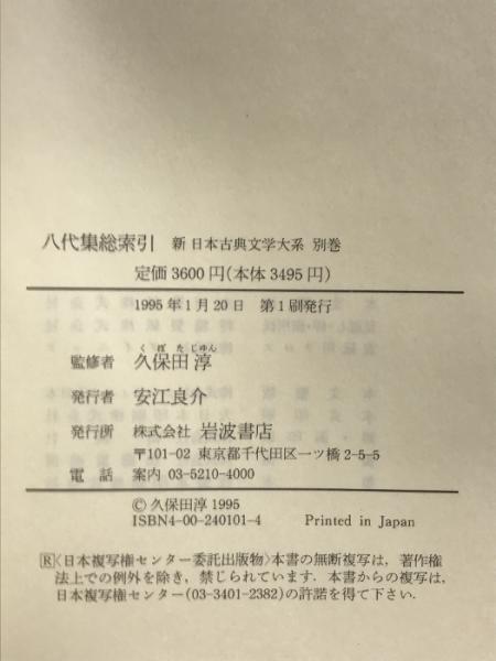 八代集総索引 新日本古典文学大系 (別巻) 岩波書店 久保田 淳