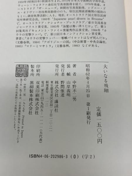 大いなる飛翔 講談社 中野 不二男