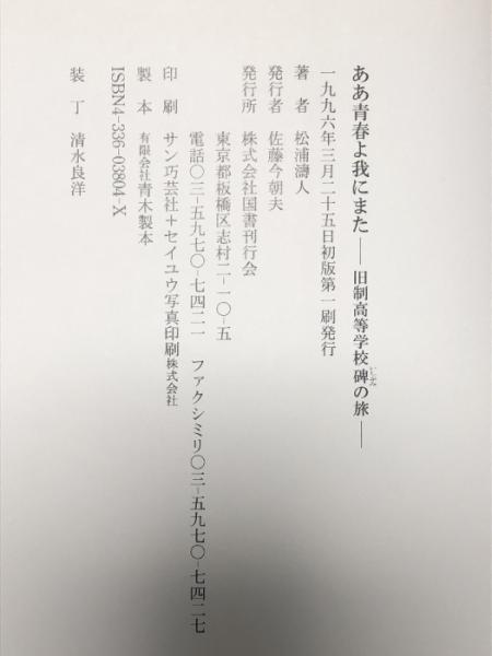ああ青春よ我にまた―旧制高等学校碑の旅 国書刊行会 松浦 涛人