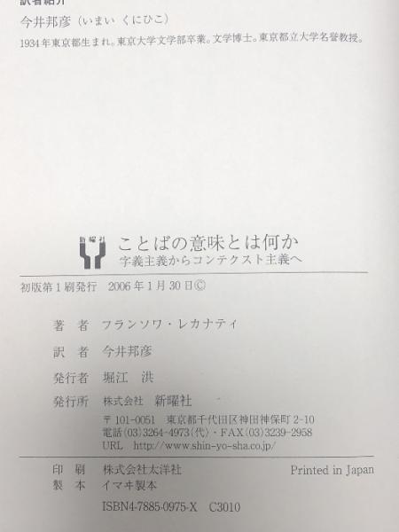 ことばの意味とは何か―字義主義からコンテクスト主義へ 新曜社 フランソワ レカナティ
