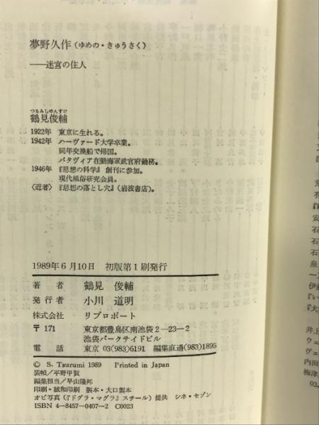 夢野久作: 迷宮の住人 (シリーズ民間日本学者 20) リブロポート 鶴見 俊輔