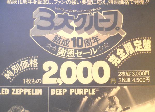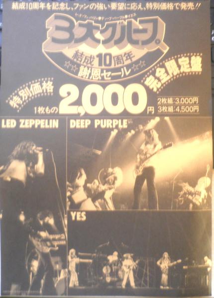 3大グループ結成10周年謝恩セール レッド・ツェッペリン/ディープ・パープル/イエス チラシ a12