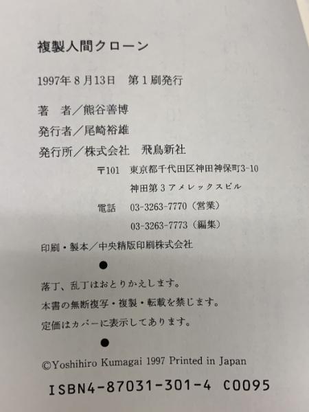 複製人間クロ-ン: 「クロ-ン人間」の研究最前線!! 飛鳥新社 熊谷 善博