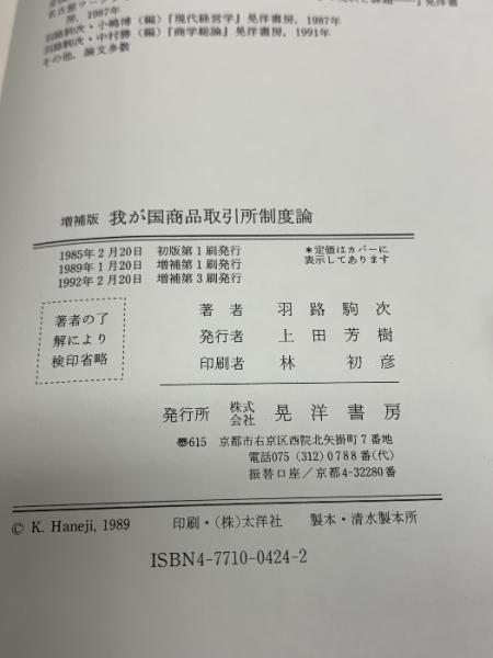 我が国商品取引所制度論 増補版 晃洋書房 羽路 駒次
