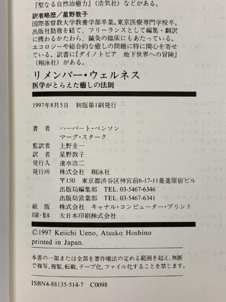 リメンバー・ウェルネス: 医学がとらえた癒しの法則 翔泳社 ハーバート ベンソン