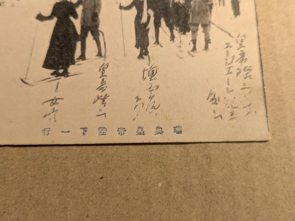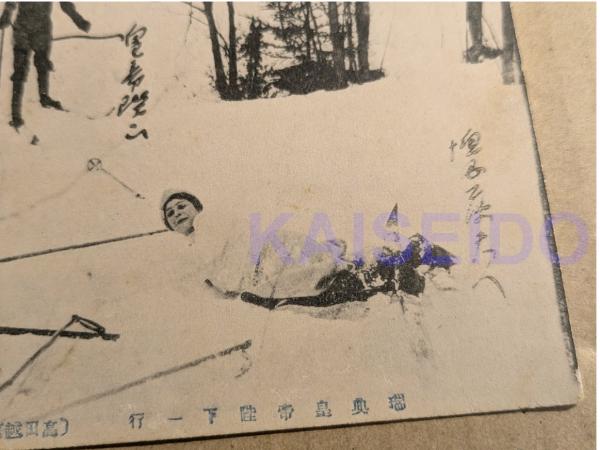 戦前絵葉書 瑞典皇帝陛下一行 2枚 (No.1 No,2) 越信スキー倶楽部 スキーをするグスタフ5世ほか (スウェーデン皇帝陛下)