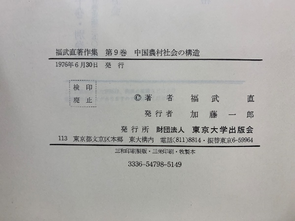 福武直著作集 第9巻 (中国農村社会の構造)