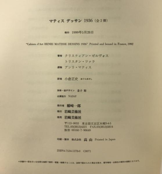 マティスデッサン1936 (日本語訳別冊付/全2冊)岩崎芸術社 クリスティアン・ゼルヴォス