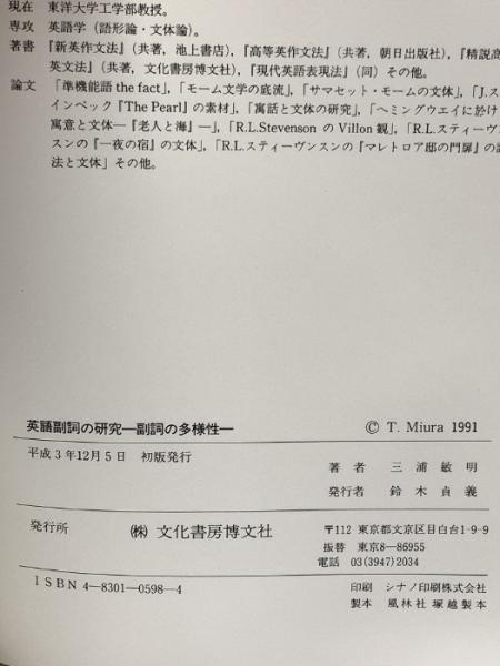 英語副詞の研究: 副詞の多様性 文化書房博文社 三浦 敏明