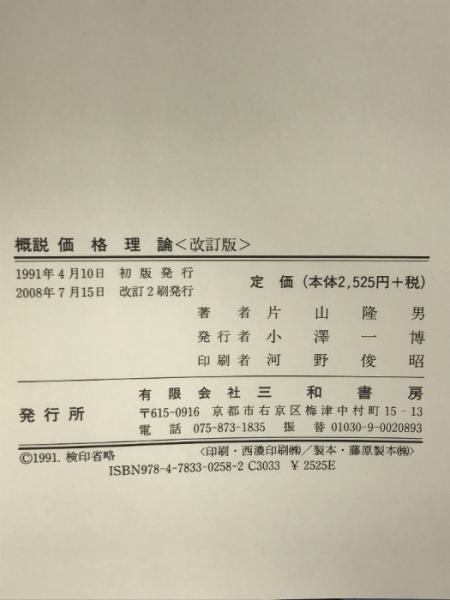 概説価格理論 三和書房 片山 隆男 三和書房 片山 隆男