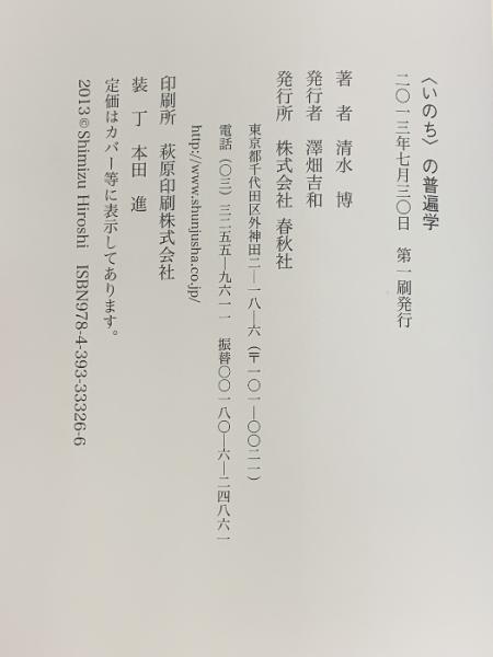 〈いのち〉の普遍学 春秋社 清水 博