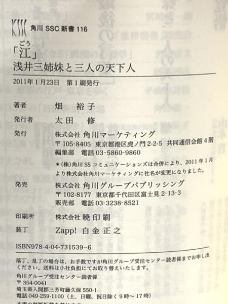 「江」 浅井三姉妹と三人の天下人 (角川SSC新書 116) 角川マーケティング(角川グループパブリッシング) 畑 裕子