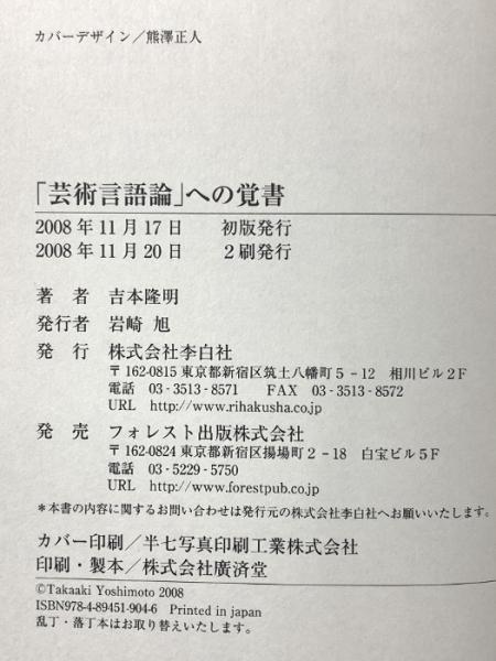 「芸術言語論」への覚書 李白社 吉本 隆明