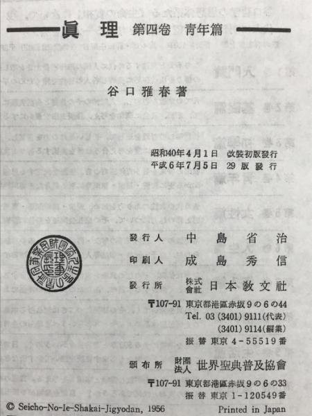 眞理 第4巻 改装版 青年篇 日本教文社 谷口 雅春