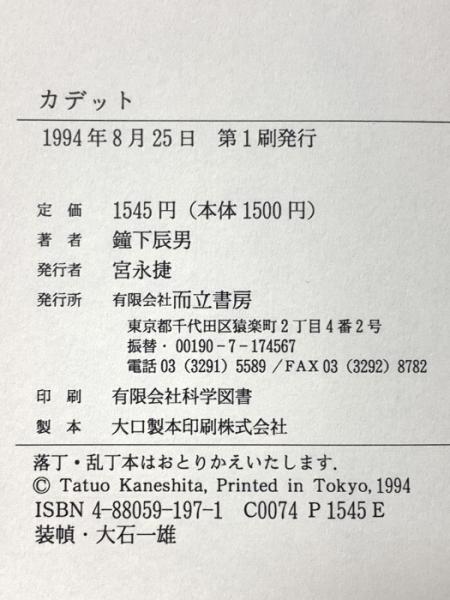 カデット 而立書房 鐘下辰男