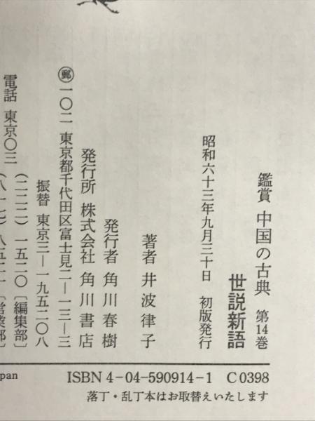 鑑賞中国の古典 (14)世説新語 KADOKAWA 角川書店 井波 律子