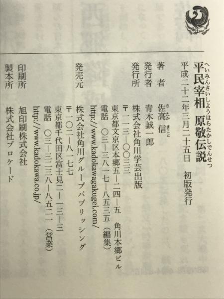 平民宰相 原敬伝説 角川学芸出版 佐高 信