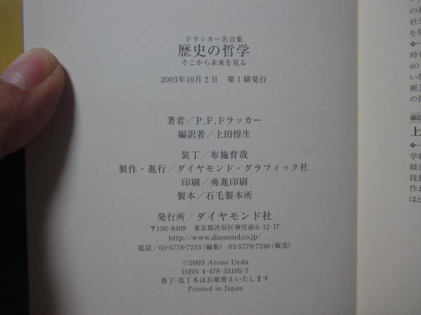 歴史の哲学 : そこから未来を見る : ドラッカー名言集 (初版)