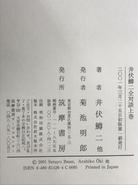 井伏鱒二全対談 (上巻) 筑摩書房 井伏 鱒二