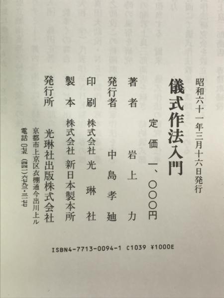 儀式作法入門: 京都・宇治・城陽地方の 冠婚葬祭その心としきたり 光琳社出版 岩上 力