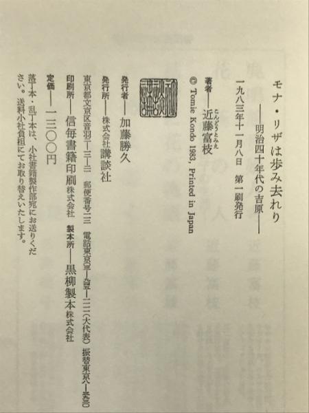 モナリザは歩み去れり 講談社 近藤 富枝