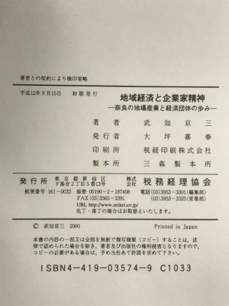 地域経済と企業家精神: 奈良の地場産業と経済団体の歩み 税務経理協会 武知 京三