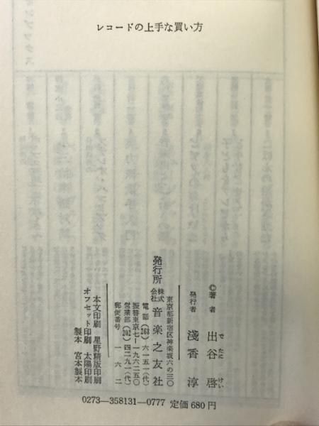 レコードの上手な買い方 ON BOOKS(13) 音楽之友社 出谷 啓