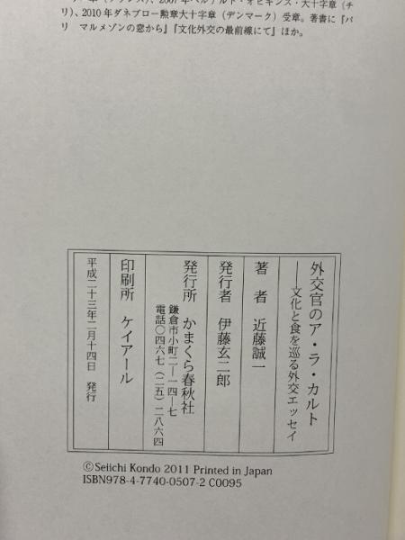 外交官のア・ラ・カルト (文化と食を巡る外交エッセイ) かまくら春秋社 近藤誠一