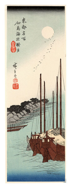東都名所 佃島海辺朧月【復刻版】 Famous Places in the Eastern Capital / Misty Moonlight on the Sea at Tsukuda Island【Reproduction】