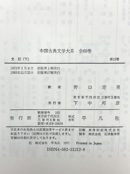 史記 下 中国古典文学大系 12 平凡社 司馬 遷