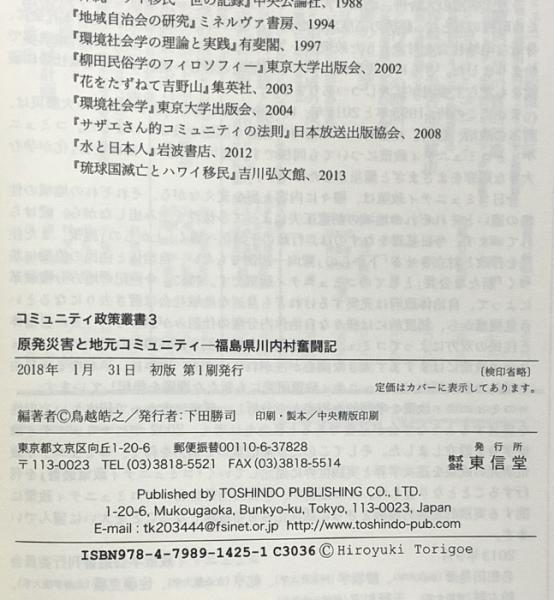 原発災害と地元コミュニティ 福島県川内村奮闘記 (コミュニティ政策叢書) 東信堂 鳥越 晧之