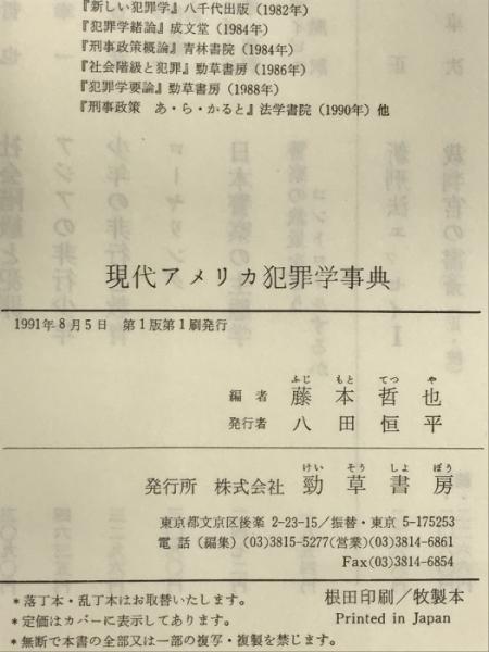 現代アメリカ犯罪学事典 勁草書房 藤本 哲也