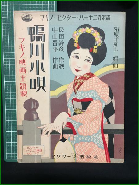 【楽譜】【マキノビクターハーモニカ楽譜No,77 マキノ映画主題歌「鴨川小唄」 作歌/長田幹彦 作曲/中山晋平 編曲/松原千加士 表紙絵/斉藤住三】ビクター出版社