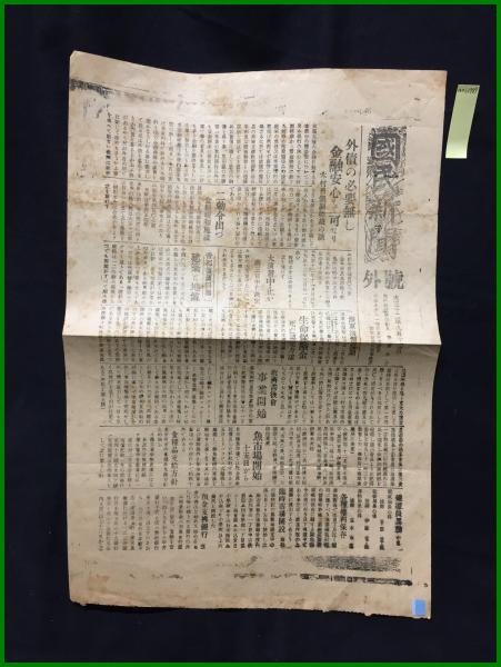 【国民新聞 大正12年9月12日 号外】【外債の必要無し金融安心して可なり】