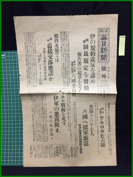 【大阪毎日新聞 昭和10年10月7日 号外】【伊の規約違反を認め連盟制裁規定を発動】