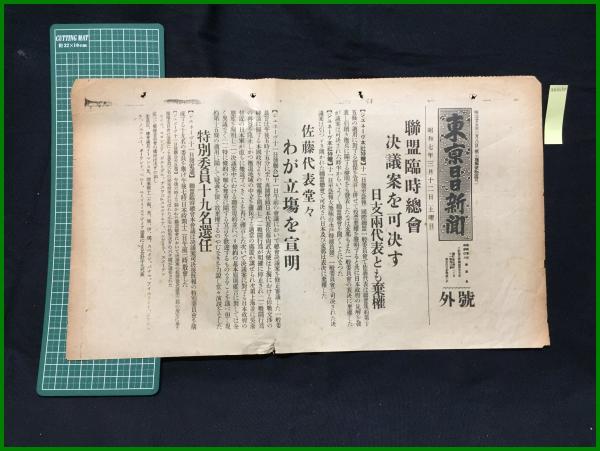 【東京日日新聞 昭和7年3月12日 号外】【連盟臨時総会決議案を可決す】