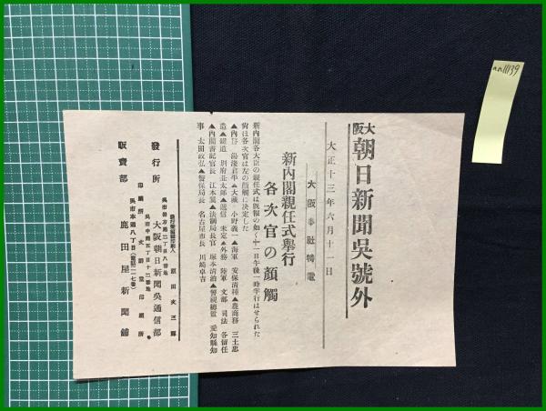 【大阪朝日新聞 大正13年6月11日 呉号外】【新内閣親任式挙行 各次官の顔触】