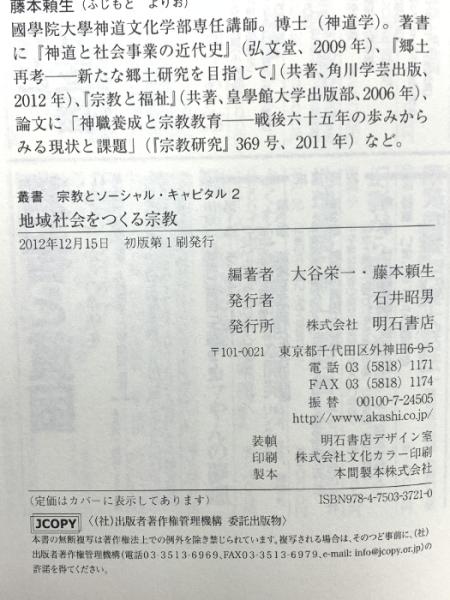 地域社会をつくる宗教 (叢書宗教とソーシャル・キャピタル 2) 明石書店 大谷 栄一