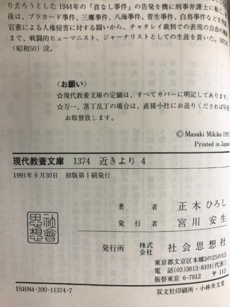 近きより (4)日中戦争勃発 (現代教養文庫 1374) 社会思想社 正木 ひろし