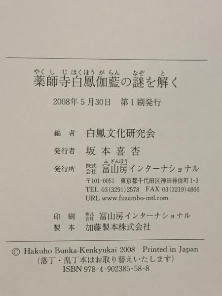 薬師寺 白鳳伽藍の謎を解く 冨山房インターナショナル 白鳳文化研究会