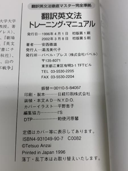 翻訳英文法トレーニング・マニュアル: 翻訳英文法徹底マスター完全準拠 バベル 安西 徹雄