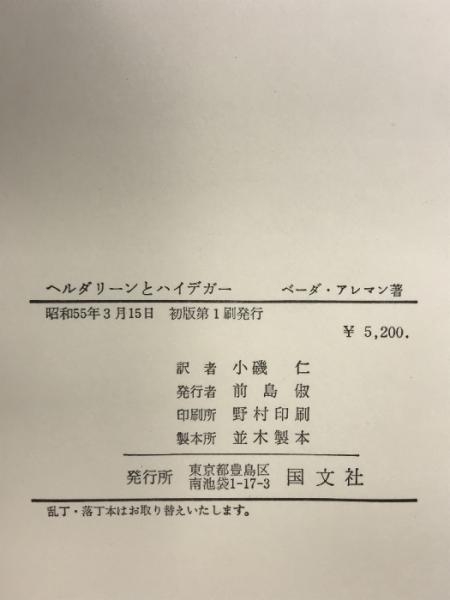 ヘルダリーンとハイデガー 国文社 著:ベーダ・アレマン 訳:小磯仁 昭和55年