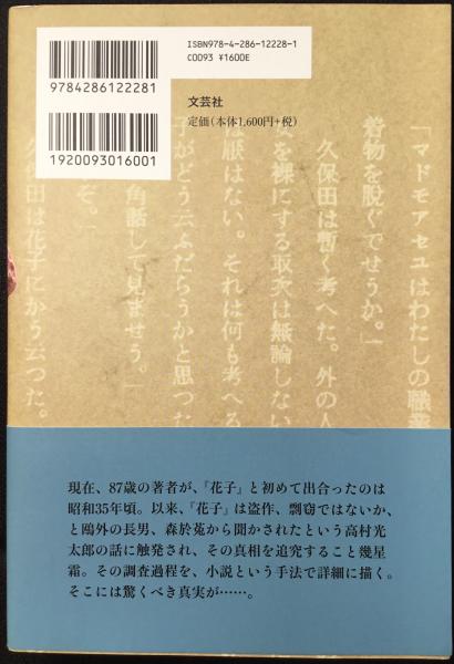 • 解説 総417頁 判型19x13cm 初版カバ帯 極美本 森鴎外の短編小説『花子』をめぐる、異色の文学ミステリー。『花子』は鴎外の贋作か!?それを明らかにすべく、長年にわたり調査・研究に取り組む。果たしてその真相は・・・。『花子』と初めて出合った昭和35年以来、『花子』は盗作、剽窃ではないか、と鴎外の長男、森於兎から聞かされたという高村光太郎の話に触発され、その真相を追究すること幾星霜。その調査過程を、小説という手法で詳細に描く。そこには驚くべき真実が・・・・・。長年に渡り膨大な参考資料を調べ上げ、数々の文学賞を総なめにした確かな筆力で書き上げた下文学の傑作。