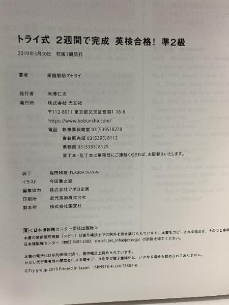 トライ式 2週間で完成 英検合格! 準2級 光文社 家庭教師のトライ