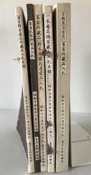 入札目録 5冊揃え:某家所蔵品鈴木秀嶺翁遺愛品、一木庵高橋家蔵品、古殿家白雲居某家所蔵品、波多野古渓氏所蔵品、某舊大名御